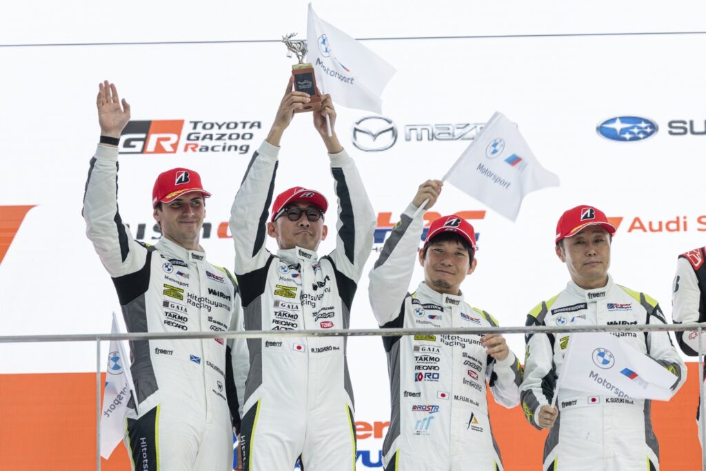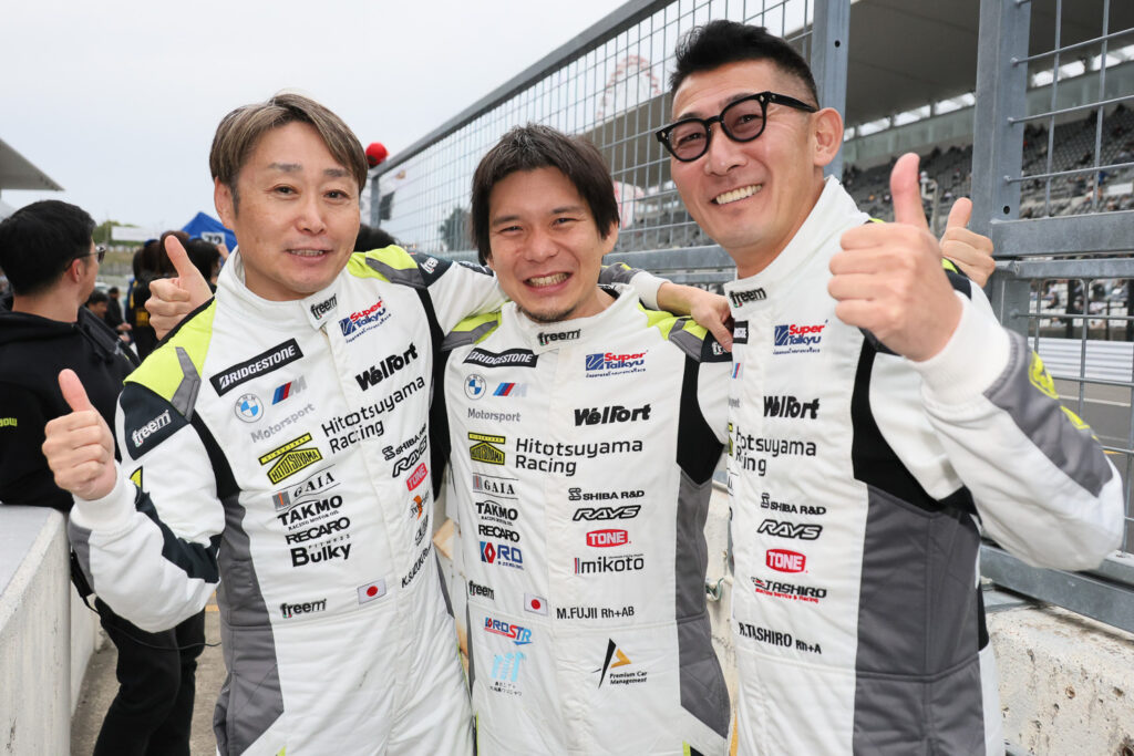 藤井からステアリングを託された田代は、#21 Hitotsuyama BMW M2 Racingでのレース参戦は初めてでしたが、ST-5クラスでの経験を持ち、チューニングショップを営むだけにマシンの理解は深いということもあって、2分25秒台を連発する安定感ある走りを披露。チームからも「安心して見ていられた」と評価される内容でした。途中、藤井のピットレーン速度違反によりドライブスルーペナルティを受ける苦しい場面や、FCY(フルコースイエロー)が導入されることもありましたが、田代は落ち着いて対処。61周を終了したところで鈴木へバトンをつなぎます。